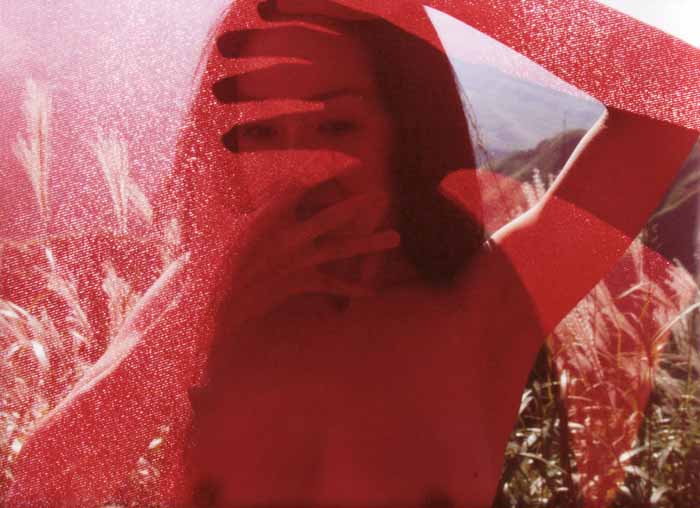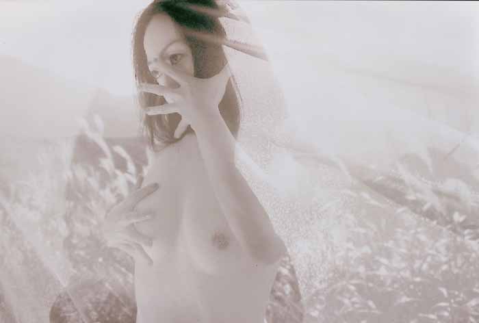 モデルの前に薄い布が入ることでソフトフォーカスのような印象も受けますが、モデルにはしっかりピントがきているのでシャープに写し出されています。ハイキー調でモデルの手の動きや体のラインをきれいに表現しました。タイトルの通り、風の音が感じられます。 |